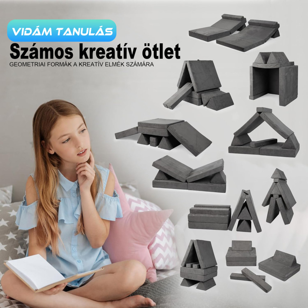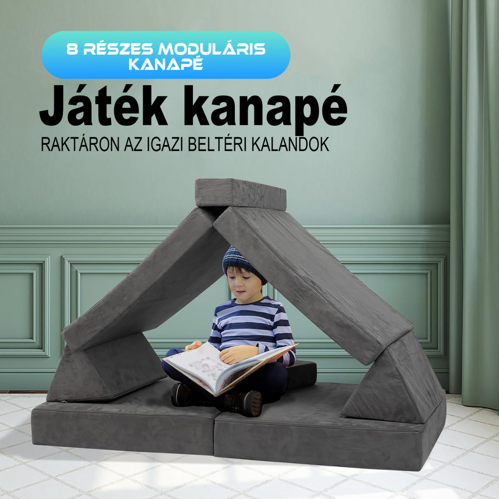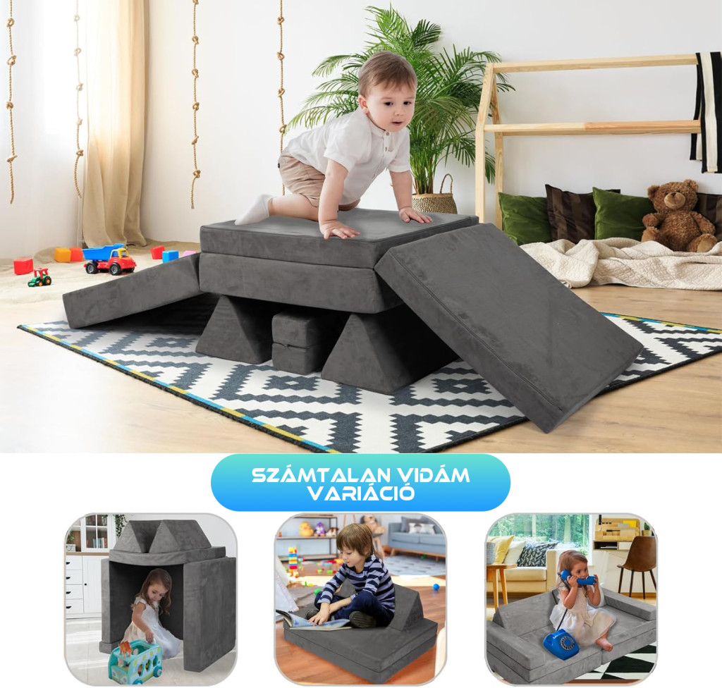 The 8-piece modular kids' sofa offers numerous possibilities for creative furniture arrangements. Made from soft foam and durable fabric, the sofa elements can be arranged into various shapes, whether it's a seating area, obstacle course, or play corner. Its versatile design allows children to create the sofa according to their imagination, contributing to fun and creative play. Made from easy-to-clean, durable materials, it is reliable for long-term use. It is an ideal choice for both home and kindergarten use.