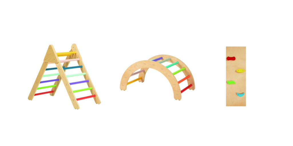 The 3-in-1 climber set with a Pikler-style triangle, rainbow climber, and dual-sided ramp is an excellent choice if you are looking for a toy that supports your child's motor development while being fun. The set includes a Pikler-style triangle, perfect for developing climbing abilities, and a curved rainbow climber, offering even more challenges. The dual-sided ramp has a smooth side and a side equipped with climbing elements, providing children with various play and development opportunities. This multifunctional tool is made from safe, natural wood, making it stable and durable, while its colorful design stimulates children's imagination and encourages play. Ideal for both indoor use and limited outdoor use!