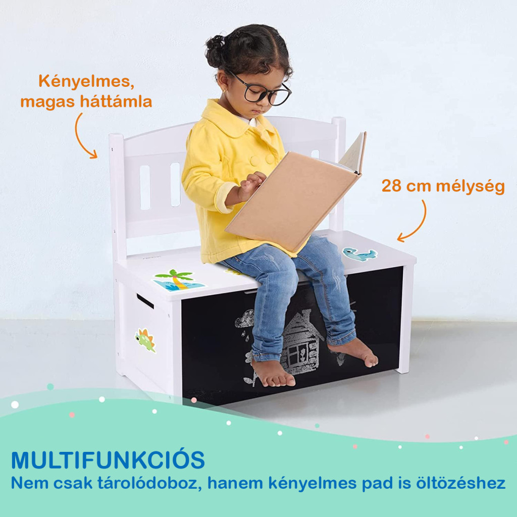 Choose this special dressing bench with built-in storage and sticker set, offering a practical and fun solution for your child! The perfect gift for any occasion.