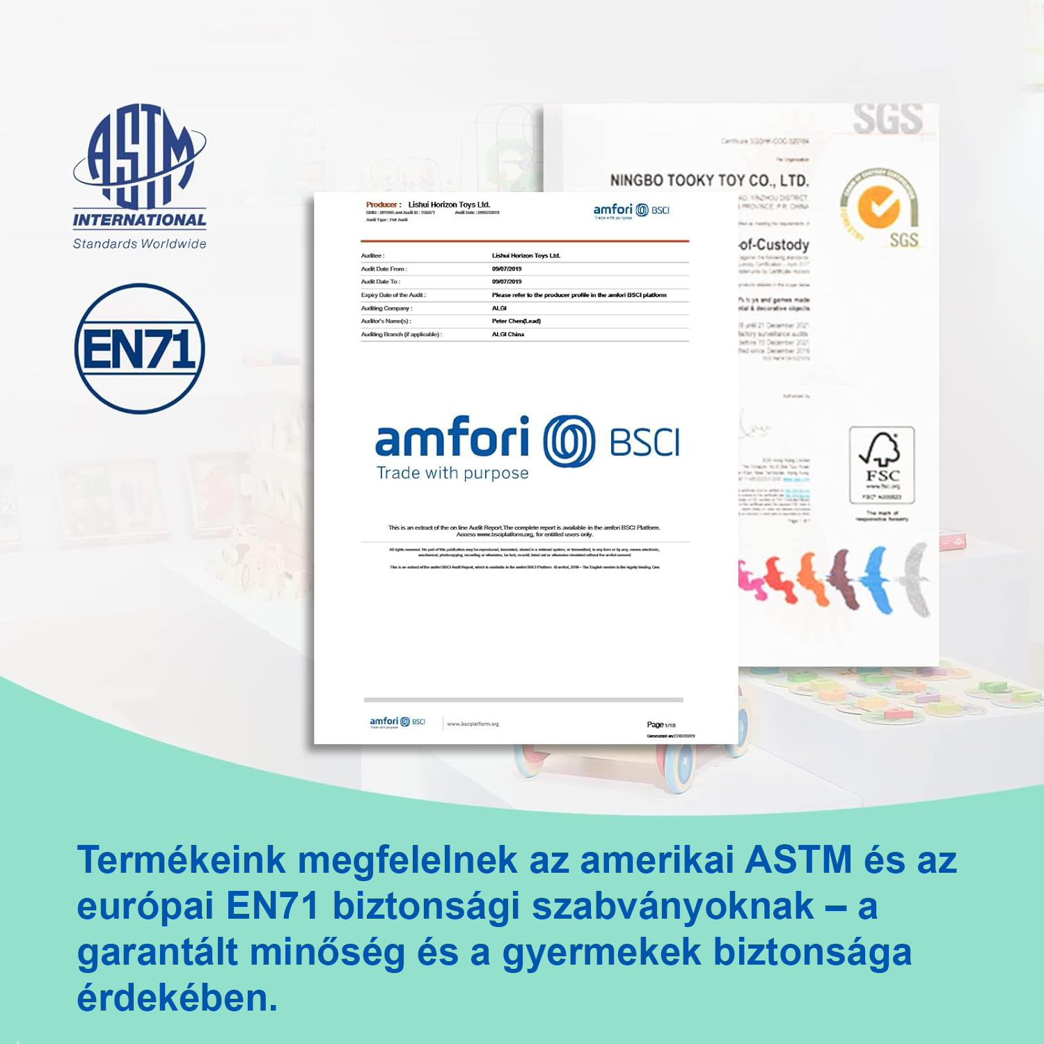 Termékeik 100%-ban biztonságos alapanyagokból készülnek és megfelelnek számos nemzetközi szabványnak. Tesztközpontjukban az EN-71 szabványt is túlhaladó teszteknek vetik alá a termékek minden egyes elemét. Ezen állításokat személy szerint is volt szerencsénk megtapasztalni. Körbevezettek minket gyártó komplexumuk minden egyes pontján. Kipróbálhattuk és teszteknek vethettük alá a kiválasztott termékeket.